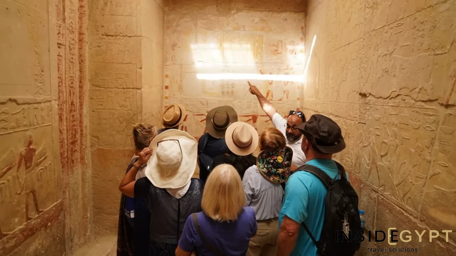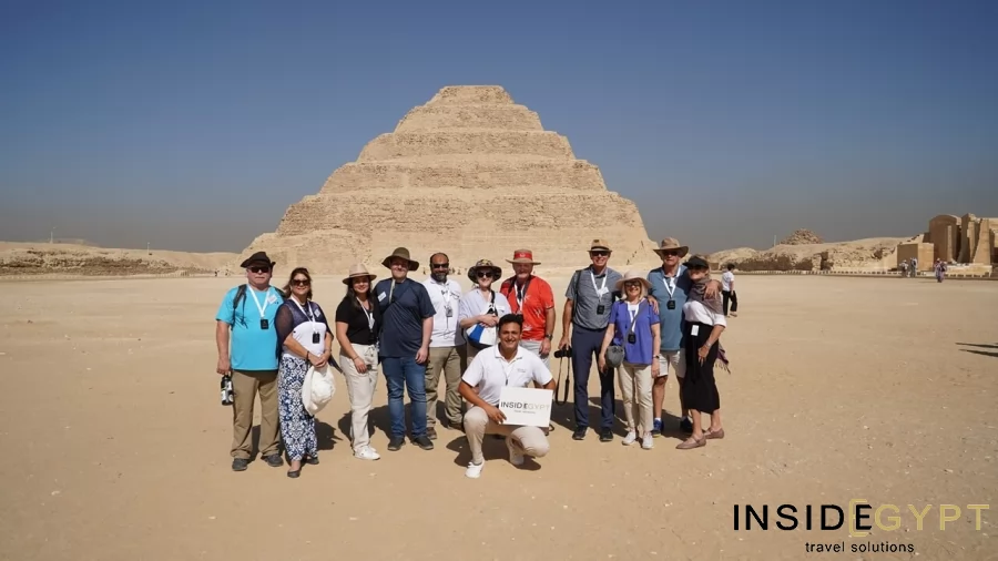 We’ll begin our tour in Saqqara, with the Step Pyramid of King Djoser, the Unas Pyramid Complex, the mastaba of Kagemi and the Imhotep Museum.