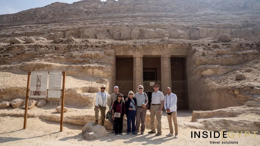 Following an introductory session with Inside Egypt representatives, you will explore the historic necropolis of Saqqara. Admire the Step Pyramid of Djoser, the oldest pyramid in Egypt, erected 4,700 years ago by the legendary architect Imhotep. Your journey includes visits to the intricately adorned Tomb of Mereruka and the Pyramid of Teti, featuring one of the earliest pyramid texts ever uncovered. The exploration culminates with a visit to the Imhotep Museum. Following lunch, you will proceed to Dahshur, home of the Bent and Red Pyramids constructed for Pharaoh Snefru, which are among Egypt's oldest, largest, and impeccably preserved pyramids.