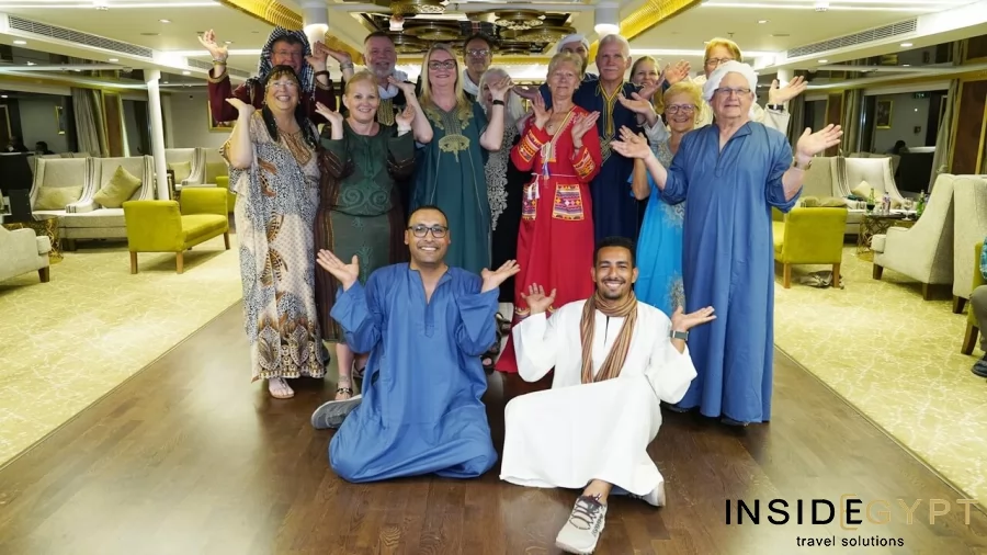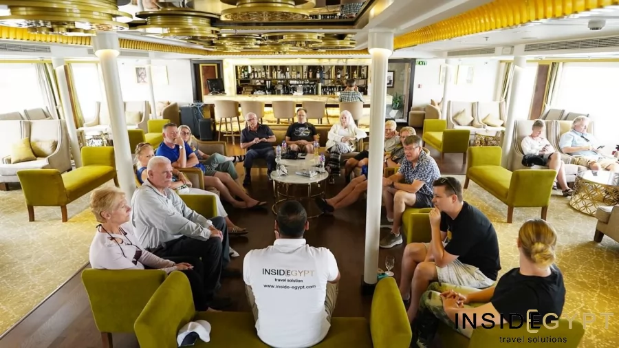 Journey onwards to Minya, which includes a Q&A session with your tour guide - Egyptology Expert, offering insights beyond typical guidebook information about ancient Egypt. Indulge in lunch and dinner onboard the cruise ship listening to the tunes of traditional folk music.