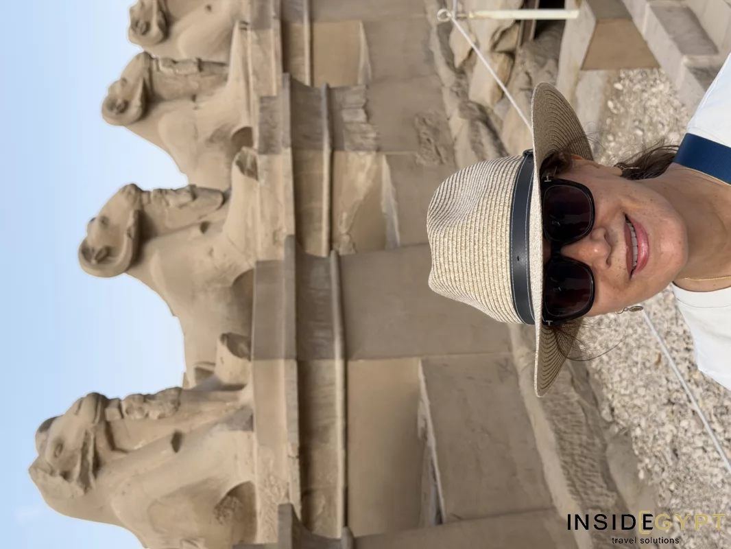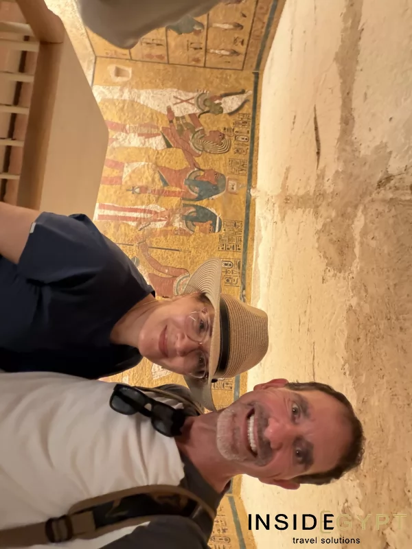 My daughter and I just returned from our 14 Day Egypt Tour with Inside Egypt. It was a trip of a lifetime! We had the most spectacular views of pyramids, temples and museums. Our Egyptologist, Dr. Hossam El-Din was very passionate about the history of Egypt and explained the details of everything we were seeing. His passion kept us intrigued and constantly wanting to learn more. Besides his wealth of knowledge, Hossam was so incredibly friendly and loved interacting with everyone in the group and entertained the many questions we had about various topics. Omar, our tour manager, kept everything running smoothly. He was fun to interact with and made small moments to personalize our trip from going out of his way to find us Kunafa (a traditional dessert) to try or combining our hotel reservation with our additional night so that we did not have to change rooms. Any questions we had, he was able to answer or quickly get the answers for us. The amount of sites that we saw would not have been possible without an organized tour like Inside Egypt. The hotels, Nile cruise ship, local restaurants and shops that were used were AMAZING! The icing on the cake was getting early special access to the Great Pyramid before it opens to the public and being able to stand between the paws of the Sphinx! It was the most incredible experience to have without the crowds. I would recommend this tour 100% to anyone wanting to visit Egypt! Egypt is safe and the Egyptian people are extremely nice and ready to welcome you!